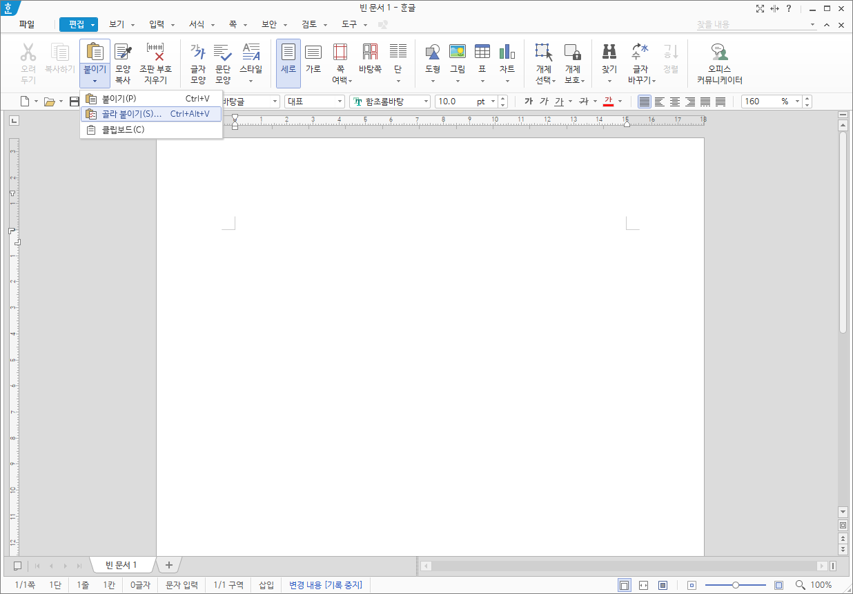 - 상단 메뉴에서 편집 → 골라 붙이기를 클릭합니다.